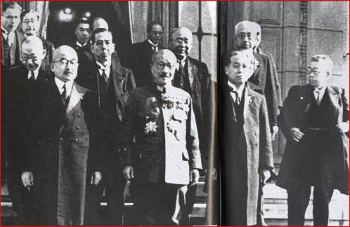 <写真は安倍首相の祖父、戦犯・岸信介(東條英機の向かって左に立っている)>